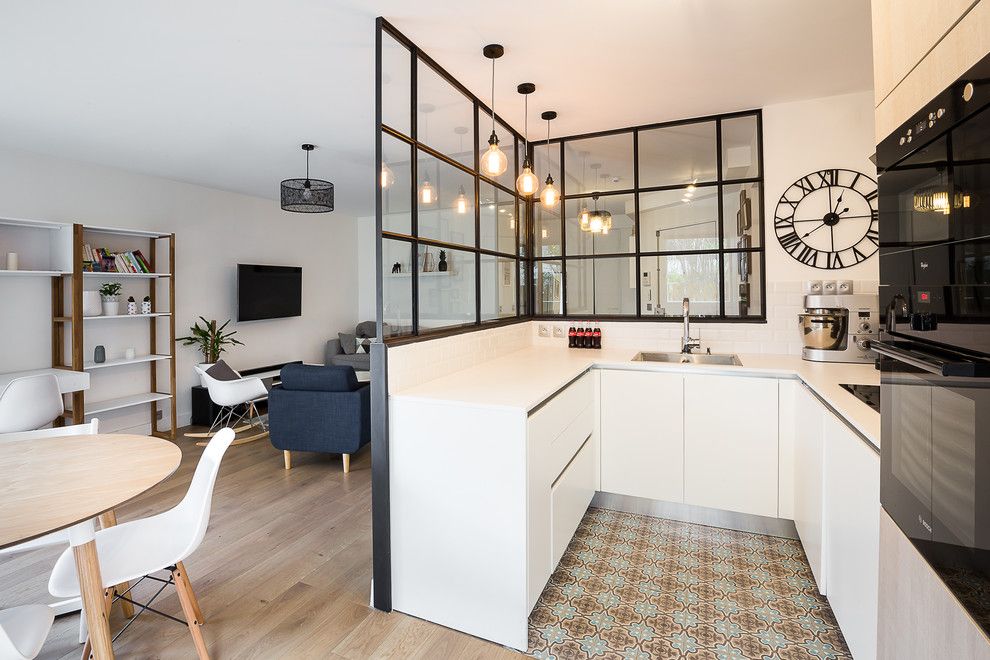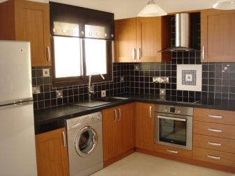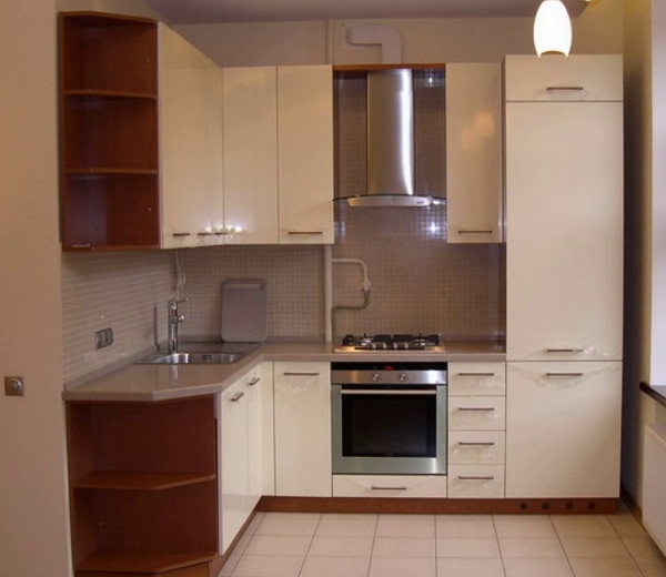 - Built-in appliances will also help make your interior as concise, modern and functional as possible. For a small family, you can choose a reduced refrigerator, built-in closet, built-in small stove and oven;