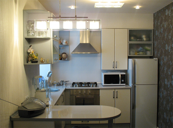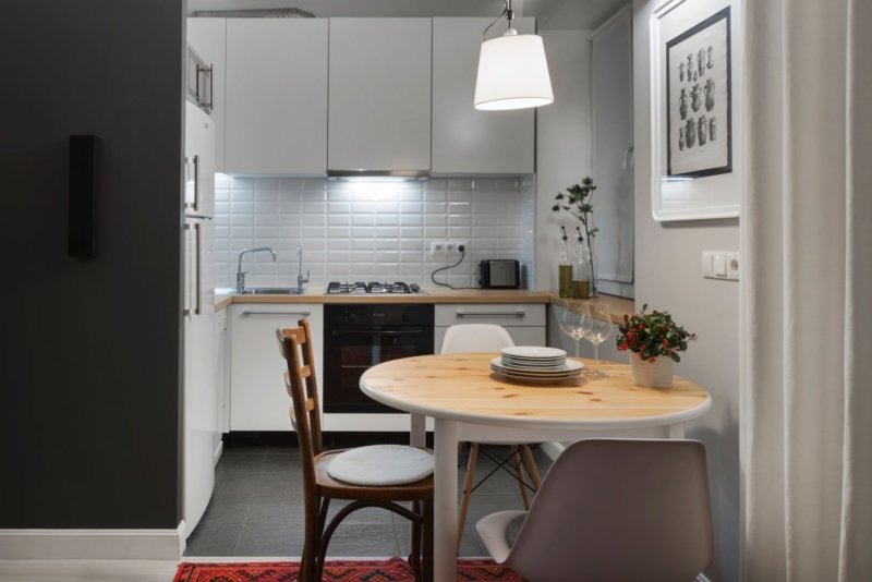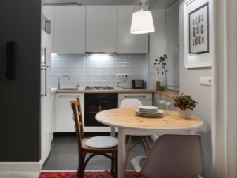 - folding dining table - this is the perfect solution for a small kitchen in the "Khrushchev". If desired, it can be assembled and made very compact if you have a small family, and if you call guests, it can be expanded. Sometimes the table is placed not in the kitchen, but in the entrance room;