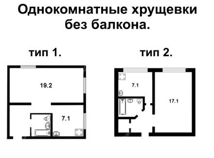 - very popular one-bedroom apartments - This is the most economical housing option for small families and people who live alone. Most often, these typical apartments have a small kitchen of 6-7 square meters, a room of 19-20 meters, a narrow entrance hall and a combined bathroom: the total area is about 31 square meters. As a rule, the kitchen and room have an adjacent wall, and the bathroom is located to the right of entrance to the apartment.