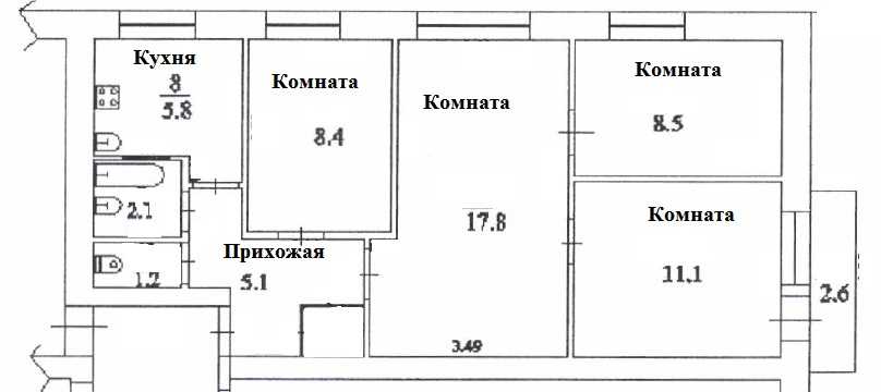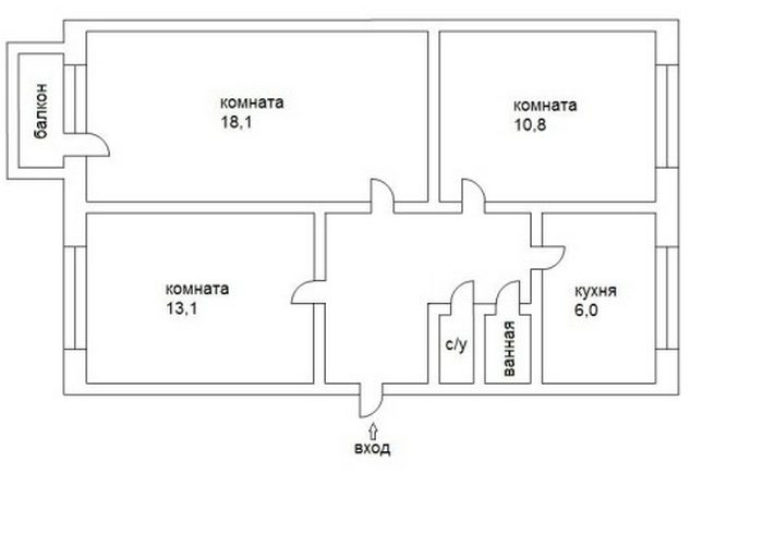 - four-room apartments are rarely found - these are houses of improved planning per 58 sq. meter. The distinctive features of these apartments are also narrow aisles, a miniature kitchen and relatively small rooms. However, for large families, the division of the entire area into four rooms will be convenient: so each family member will have his own personal space. Often it is in the “Khrushchev” with a similar layout that both the loggia and the balcony are located, which is an absolute advantage.