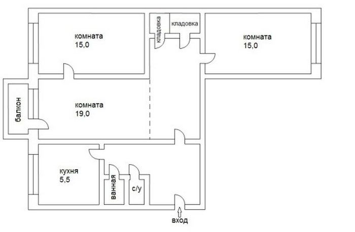 Many are now trying to do redevelopment in the "Khrushchev". Before embarking on such work, you need to familiarize yourself with the plan of the house and find out what walls you have bearing. Most often do the following redevelopment options: