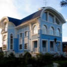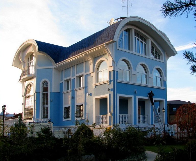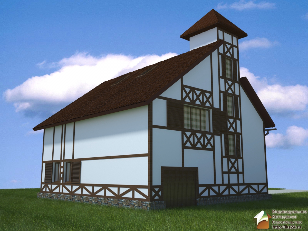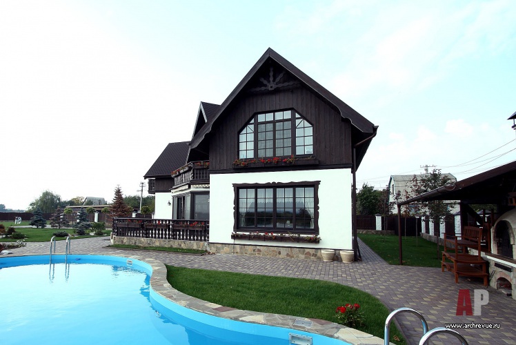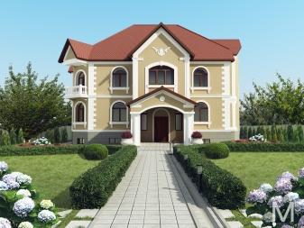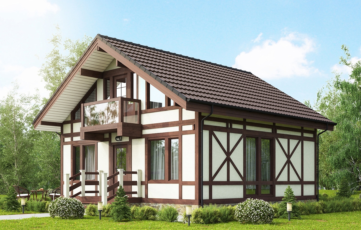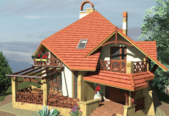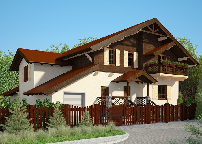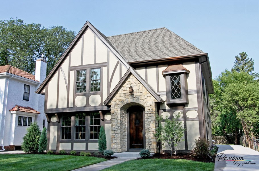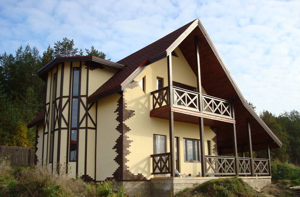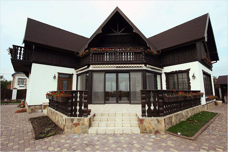 The facade in this style is always painted in warm colors, has many rounded contours, windows (small in size). In the design, borrowing of motifs (plots) from modern, country, half-timbered and other styles similar in spirit is welcomed.