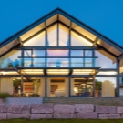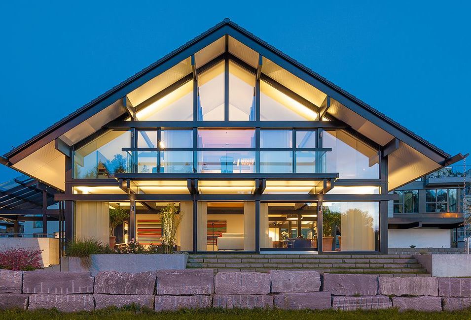 For lovers of the Scandinavian style, frame-panel houses with an abundance of windows and glazed doors will surely attract their attention. The main thing is that the forms and details, although diverse, should be combined into a harmonious composition. The introduction of stone, ceramic tiles will help to rid the facade of the feeling of uniformity, monotony.