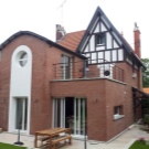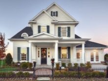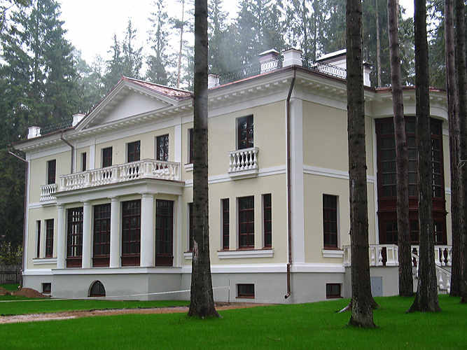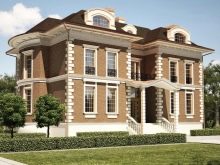 The buildings are invariably made in two floors, their walls are straight, the windows are high and divided. The porch is never made big; the columns should not be too large, either. Attic in the English style is required. The introduction of a small garden helps to underline its refinement.