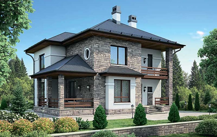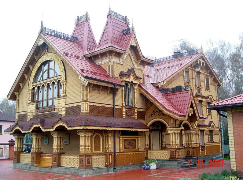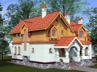 As in other areas of the country (and that is how Russian designers classify), it makes sense to make the first floor stone, the second wooden. To emphasize the expressiveness of the idea will help carved shutters, trim, sometimes turrets with small windows.