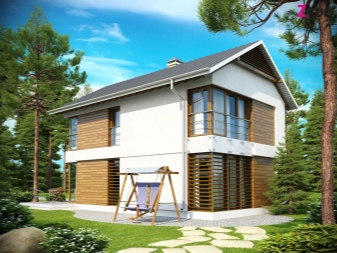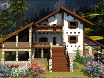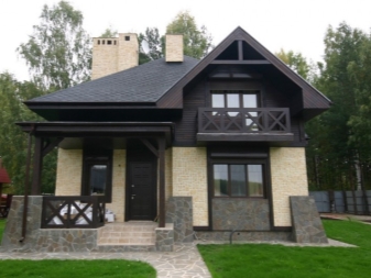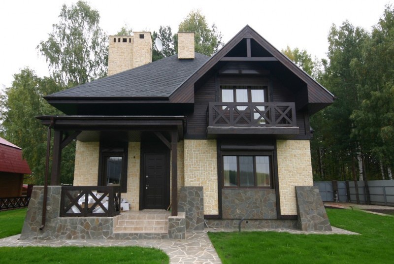 Exterior features: a combination of stone foundation, wooden walls and wood roof.Experiments with building materials are welcome if they are natural. They try to make more windows, organize a balcony, a veranda and add an attic.
