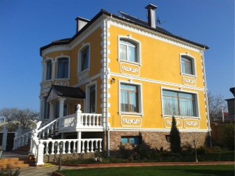 As for building materials, they must be natural or at least their lightweight imitations. It is necessary to paint a facade in the combinations of bright and pastel paints checked by time. To make small details more noticeable, they are visually underlined in white or contrasting with the wall.
