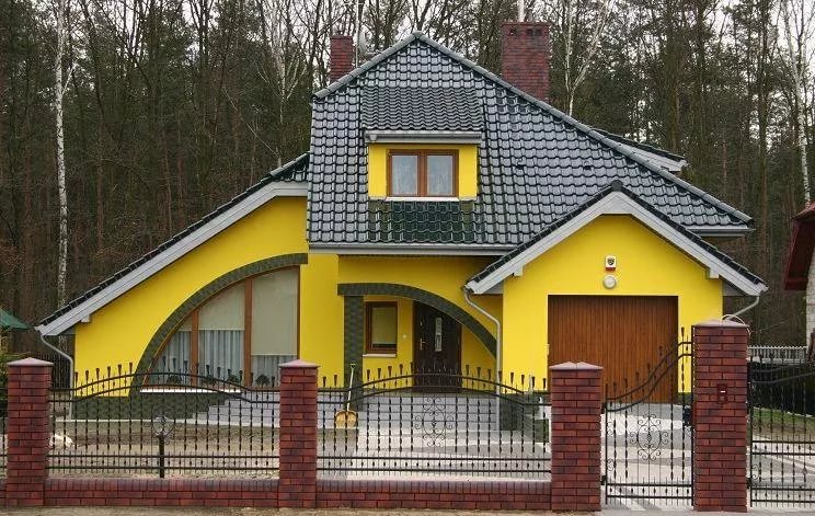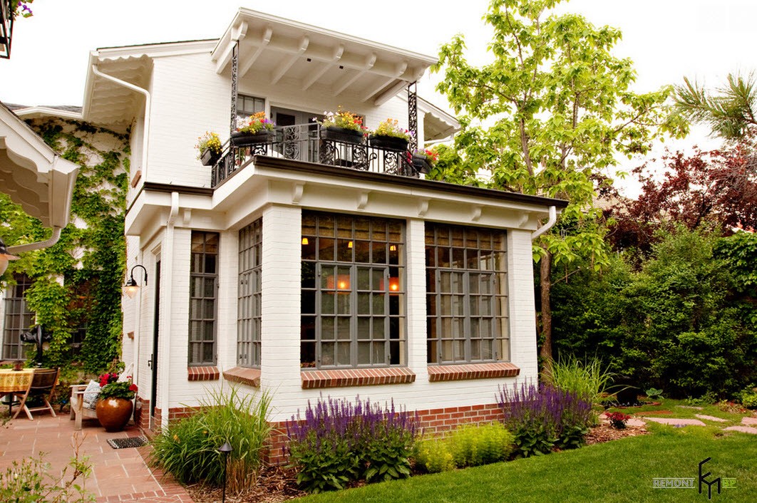 Paint the "face" of the house with warm colors, creating associations with nature, you can even use the usual white color. It makes sense to use round arches, alternating with traditional quadrilateral windows, it is desirable to set those and others, deliberately breaking the symmetry.
