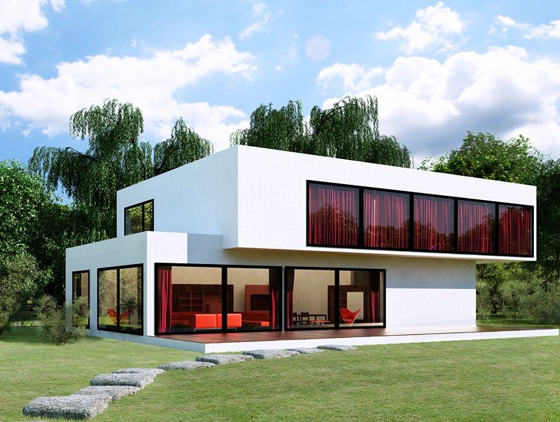 Important: try to achieve the strictest observance of proportions, to exclude deviations from the given geometric shape. Welcome large windows, located on the background of large planes of the walls (as smooth as possible, this is a very significant condition).