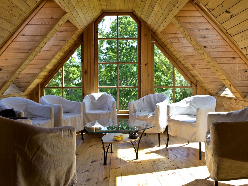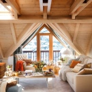 For creative people, an attic will serve as a studio or workshop. In such a house, you can live all days long and be given to creativity or come only when it catches up with inspiration. The first floor is better to arrange as simple and functional. Minimalism style will be suitable for decoration, because extra details should not distract the creative nature. The kitchen, dining room and living room bedroom should have a minimum of furniture and a maximum of free space.