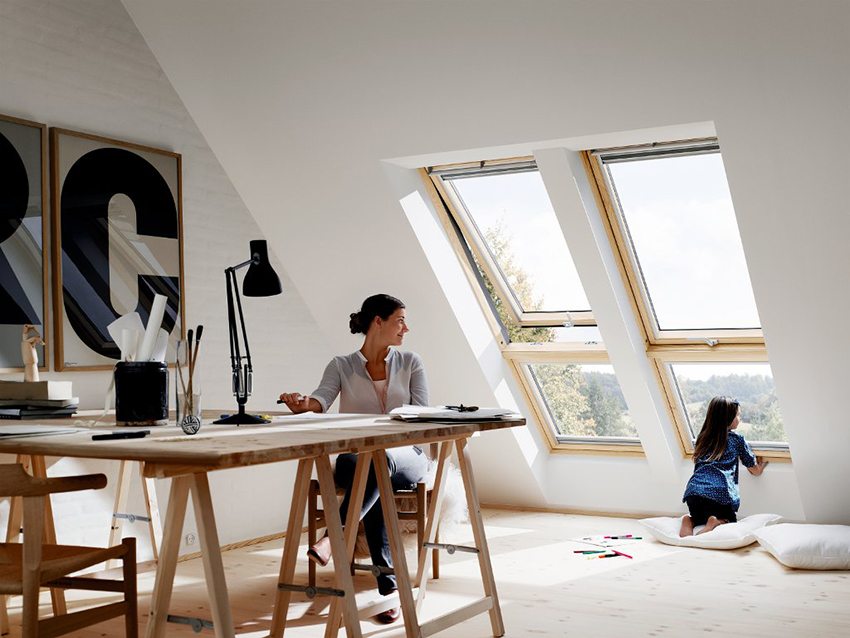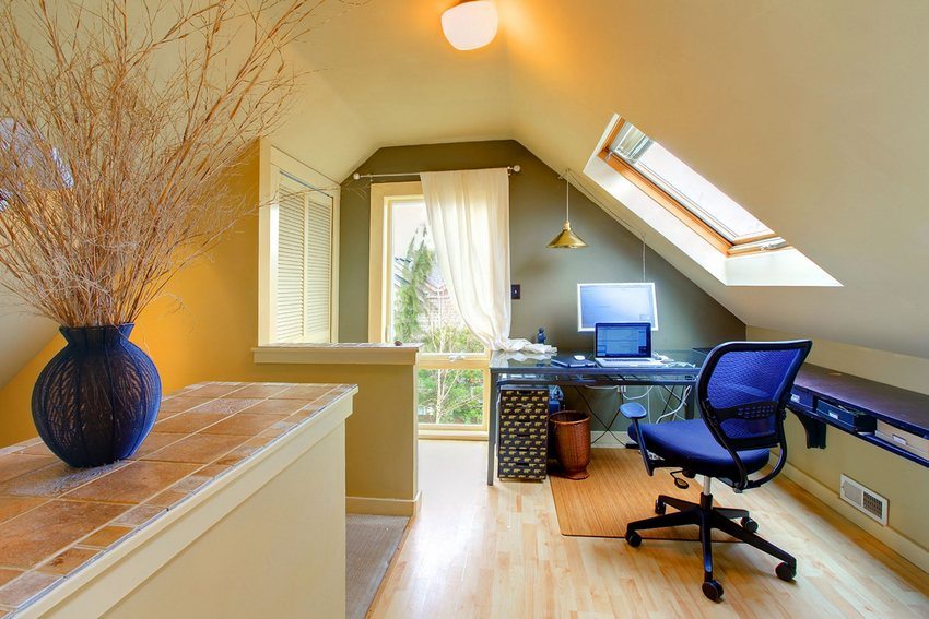 On the second floor of a huge panoramic windows. Try to take this into account when drafting your home. All walls, doors and partitions need to be dismantled in order to create one single space where all the necessary tools and devices for creative work will be located.