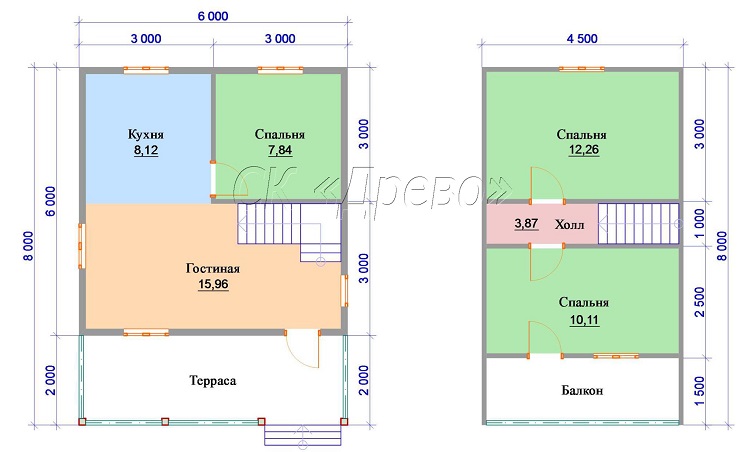 Houses measuring 6 by 8 meters are not without reason very popular. Such buildings are perfect, for example, young married couples, because they can be collected by a large company of friends and relatives on holidays. The most common type of tenant is the average Russian family, consisting of parents and two children. 48 square meters. m enough for everyone, every household will be able to allocate personal space.