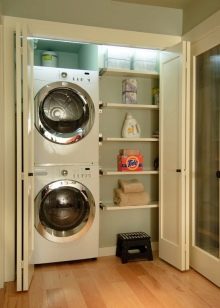 Basically, it is set up in a closet or similar utility room. You can install a maximum of two washing machines. It is important to put them correctly, because vibrations that are noticeable during operation will adversely affect the time of their service. For this, it is important to place them at a distance of 6 cm.
