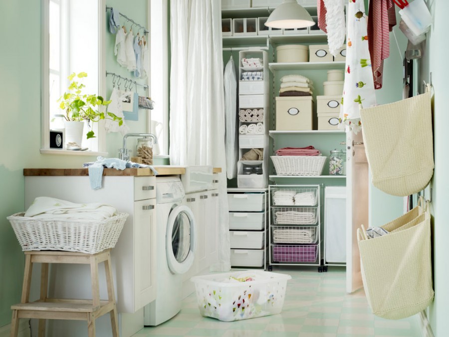 Each self-respecting mistress represents her home in which all things would be in certain places. For this you need to equip even small rooms for important items. For example, build a dream laundry. It can accommodate all that interfered in other rooms. Say, for example, household appliances.