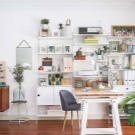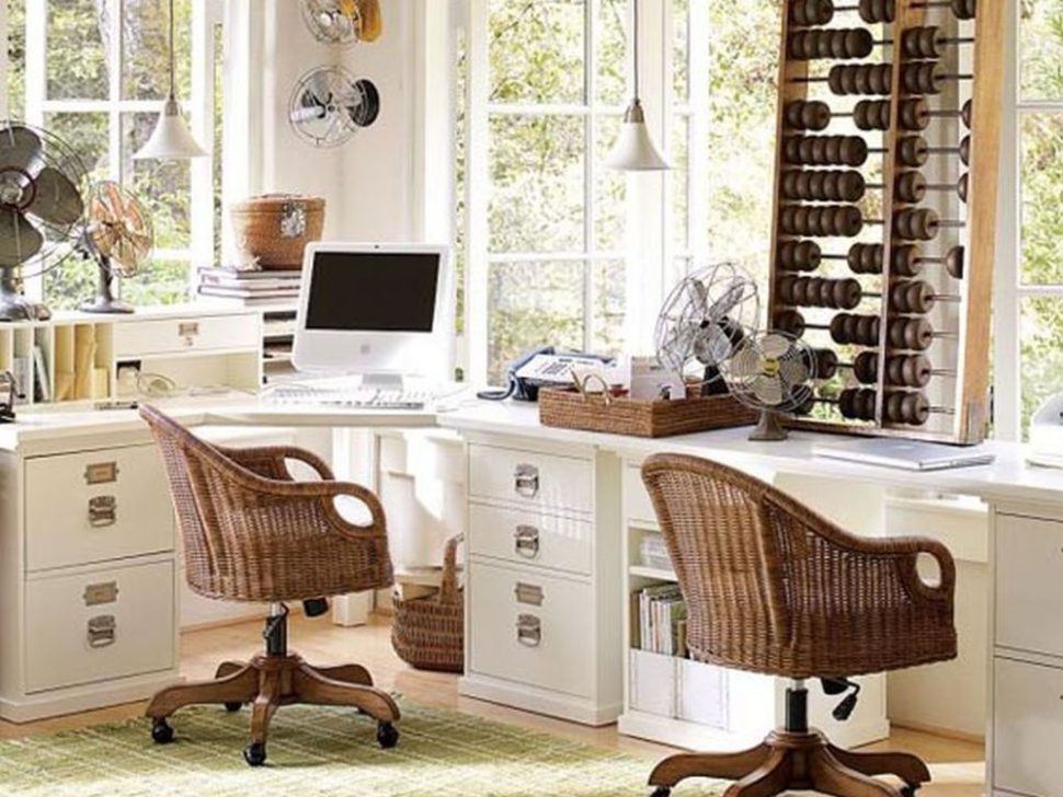 - Storage organization. It is very convenient if all the necessary documents, books and other papers are at hand. To store all this you need a desk with drawers, a trolley on wheels and shelves. It is very important to place them at such a height so that they can be reached from the chair and they do not interfere each time a person rises from his seat.