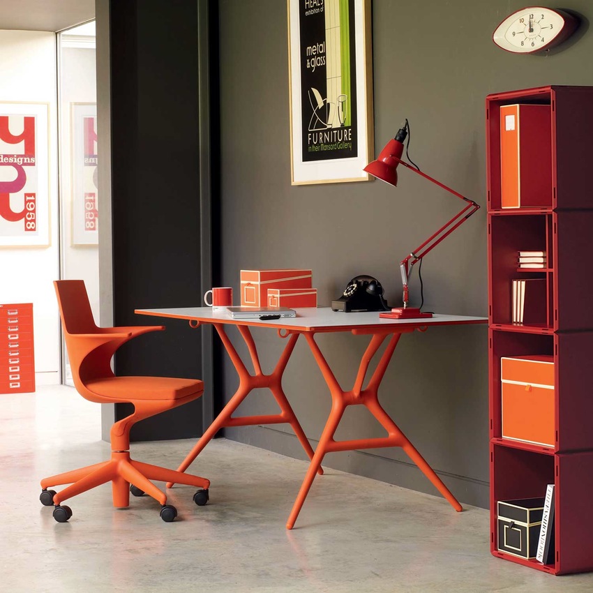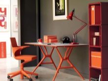 - Furniture. For any kind of activity it is necessary to acquire first of all a table. If the owner of the cabinet does almost all the work on the computer, a small table is enough - for example, a folding model will fit, which can be folded after work and hidden behind a cupboard or door. For those who often work with a large number of papers, for example, for lawyers or accountants, we need a more reliable model of the table with a wide table top and cabinet.
