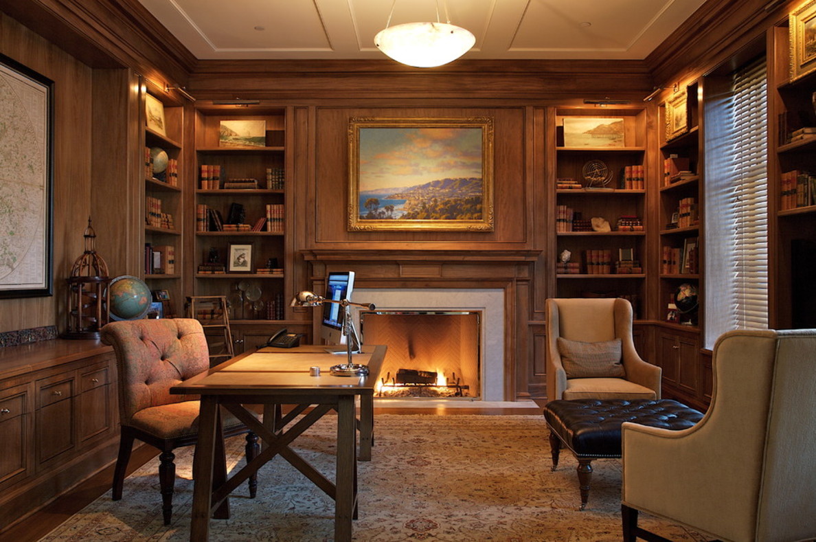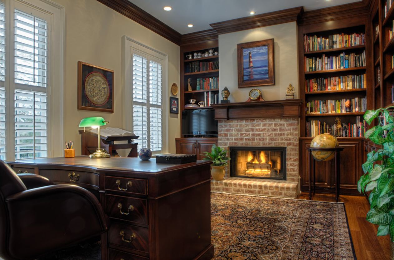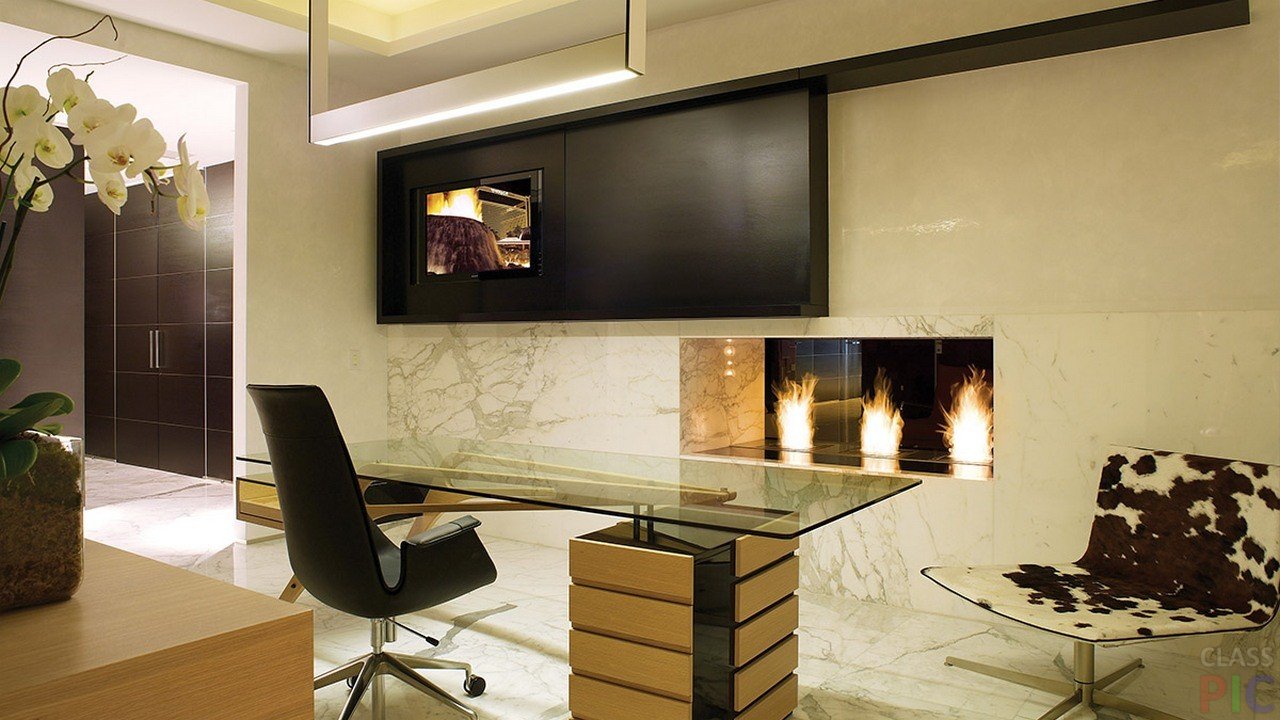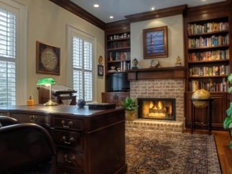 In ancient castles, a fireplace was an indispensable attribute of the cabinet. However, a real stove or fireplace can be arranged only in a private house. In the apartment, the owner of the office has to be content with the electrical option.