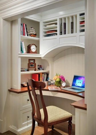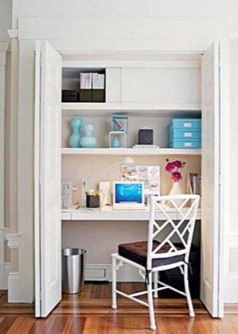 In small houses, as well as apartments, where there is no possibility to allocate a separate room for work, any utility rooms removed from the living rooms, such as a closet or an attic, are used. Often, the owners even manage to create a chamber environment there and tune in to the working mood.