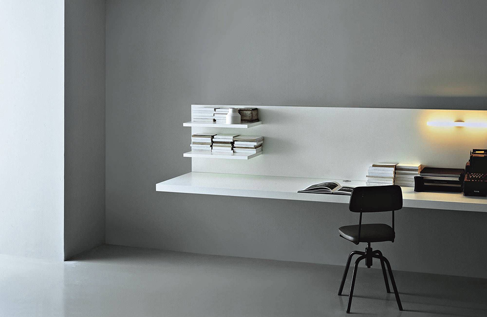 If the room has a niche into which you can squeeze a chair and table, you can turn it into a stylish office. Along the perimeter of the niche, you can light up the LED strip, and on the walls hang small shelves for storing everything you need to work.