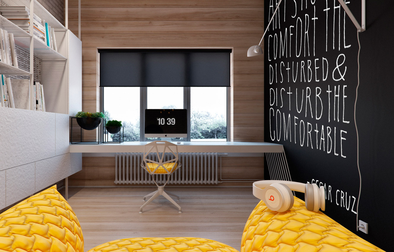 - Color design. A study, for whatever purpose it is equipped, should be designed in a discreet range - nothing should distract from work.