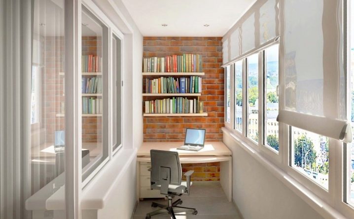 As for the owners of small apartments, in which there is no attic, they can equip themselves with a corner to work on the insulated loggia or balcony. Natural lighting will provide panoramic windows, which, if necessary, can be closed with curtains, and the table can be made right around the perimeter of the entire window.If the project of the house allows and the wall between the loggia and the room is not carrying, it can be removed and expand the space of the room, which will be both guest and office. Sometimes the room from the loggia separates the window-door unit, which can be dismantled, and the remaining wall to use as a table.