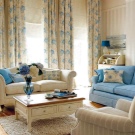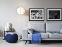 - Blue and blue in the interior are perfectly combined with white and gray. You can also add sun colors by diluting cold shades with yellow or green.