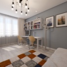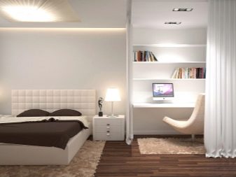 - Cabinet bedroom. In this case, the desktop can be positioned closer to the window, using a plasterboard wall or shelving. Also, using lighting, you can divide a room into two independent functional areas.