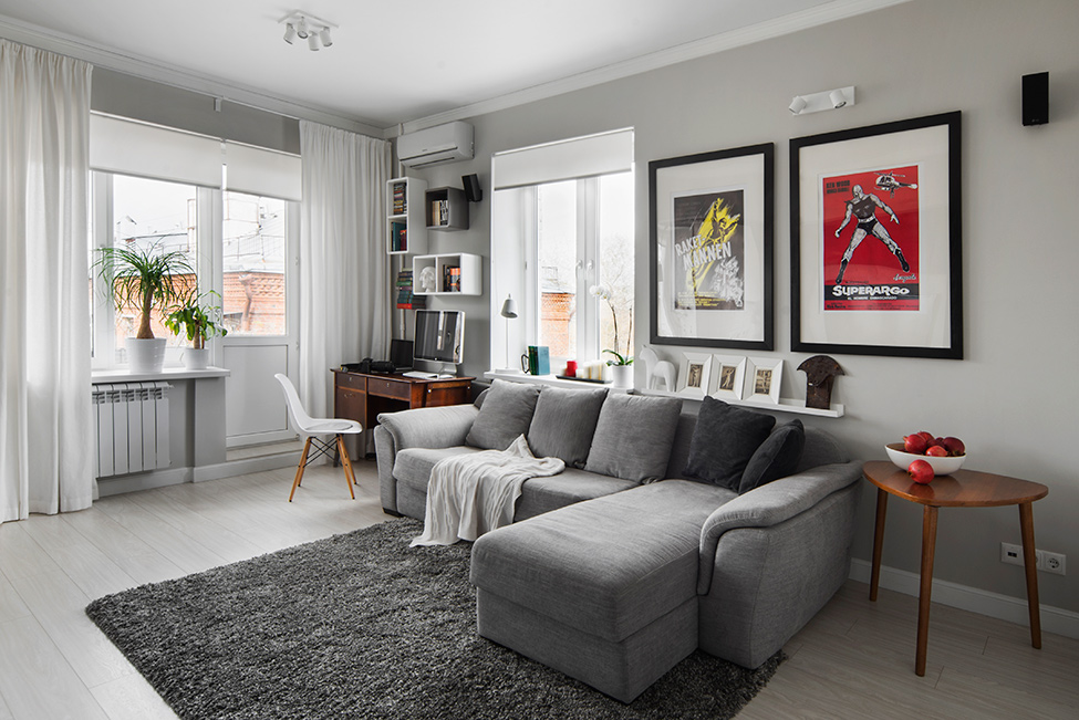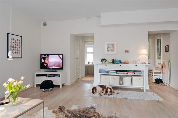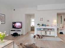 In a small apartment should be a minimum of decor. It is better to leave the open shelves of the rack half-empty, as this will create a lighter atmosphere. Do not use a large number of small decor. It will break up the room into parts and create a feeling of clutter and mess.