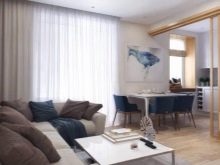 - For a small apartment the most suitable style - minimalism. Light shades, light curtains and a minimum of decor - all this creates the effect of expanding space and has a positive effect on the human condition.