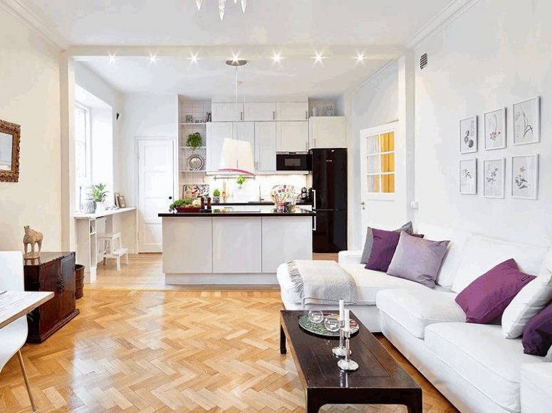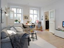 - Scandinavian The style combines the features of minimalism and the play of colors. This style is also dominated by light shades in the interior, but additional decoration in the form of paintings is allowed,decorative objects and flowers. At the same time, the main focus is on functionality and comfort.