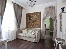 - Style provence Came to us from the southern province of France. Distinctive features - floral motifs, pastel and natural shades: beige, turquoise, olive, blue, green, pink, lavender, yellow and the like, while the interior should not be bright and rich. The main light color is diluted with a natural natural palette. Furniture can be aged, with peeling paint or chipped on the tree. You can complement the interior with unique items: a chest or an old chest of drawers.Curtains and curtains should be light and translucent, the average length to the window sill is allowed. A large number of ruches, laces, tablecloths and ceramic figurines are welcome.