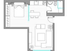 - Apartments of up to 41 sq. M. m have adjacent rooms.