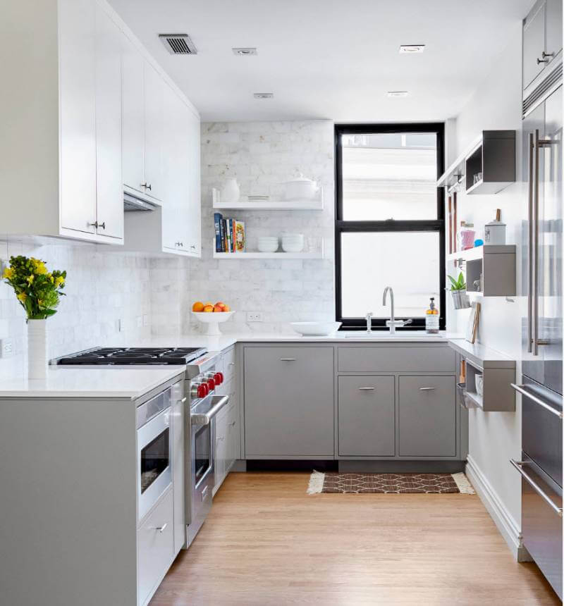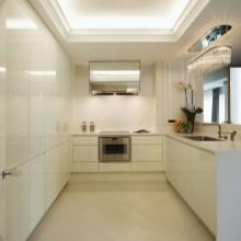 - Well, the kitchen must have a spacious and functional working area with a stove, dishwasher and sink. If you use a gas stove, then you can not combine the kitchen with the room, but you can expand the doorway, use sliding doors. And at the same time, it is strictly forbidden to change the position of the gas stove and close access to it.