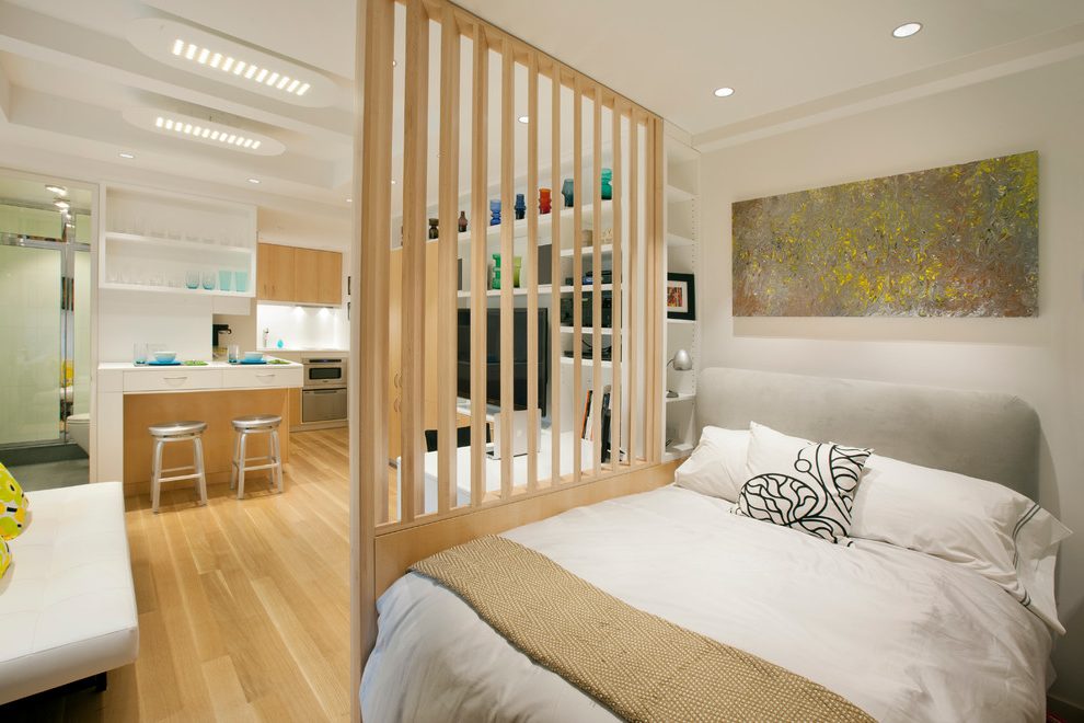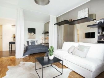 - Bedroom-living room. A common variant of the arrangement of the apartment, if the family has a child, and one room is reserved for the nursery. With this method of zoning is not necessary to demolish the interior partitions, you can use different methods of zoning the room.