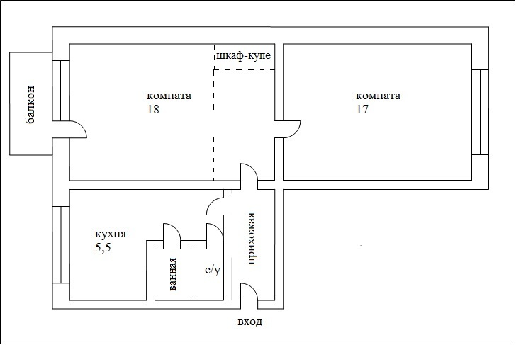 Exists Three common layouts of two-room "Khrushchev": "book", "tram" and "lorry" with an improved layout. The smallest room in any apartment is the entrance hall. To expand its area is possible only by increasing the doorway. More natural light will do this, and the hallway will visually expand. If the hallway is long but narrow, it can be divided into two parts. The first will be a standard hallway near the entrance door, and the second will be the transition to the room.