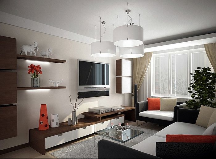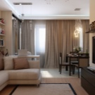 "Khrushchev" - small apartments with low ceilings. One of the rooms is a passage, so it is not customary to have a living area in it. The maximum area rarely exceeds 50 square meters.m, and the selection of a good functional design in rooms with such features becomes a real challenge for the masters. The apartment is turned into a “studio”, it is advised to design it in the style of minimalism. To save space, furniture is selected multifunctional, and equipment - built.