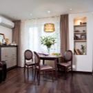 In the two-room "brezhnevka" installed modular furniture of small sizes. The whole furnishings are multifunctional, which saves space in a small room.