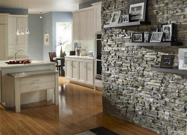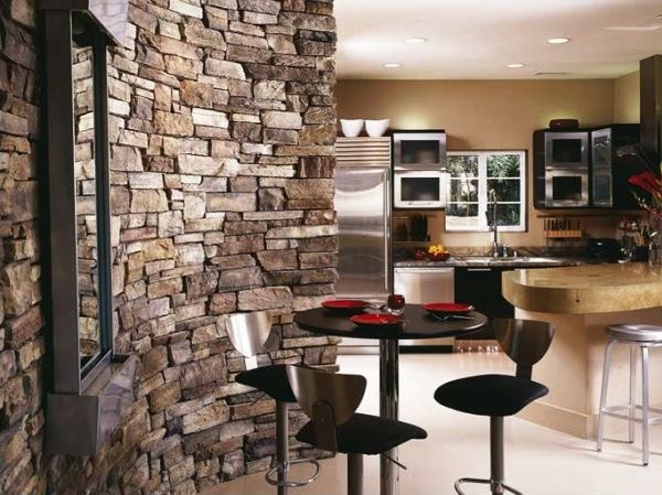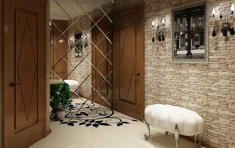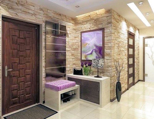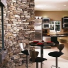 Stone decor is not used as a monolithic finish - it visually narrows the room. This coating should be alternated with other materials.Rubble stone is used for wall cladding. This variety has a low price. Monochrome masonry must be combined with other types of cladding. Decorative elements of malachite or marble will look beautiful. Before laying the facing slabs of stone, it is necessary to carefully treat and level the rough surface.