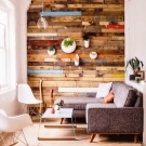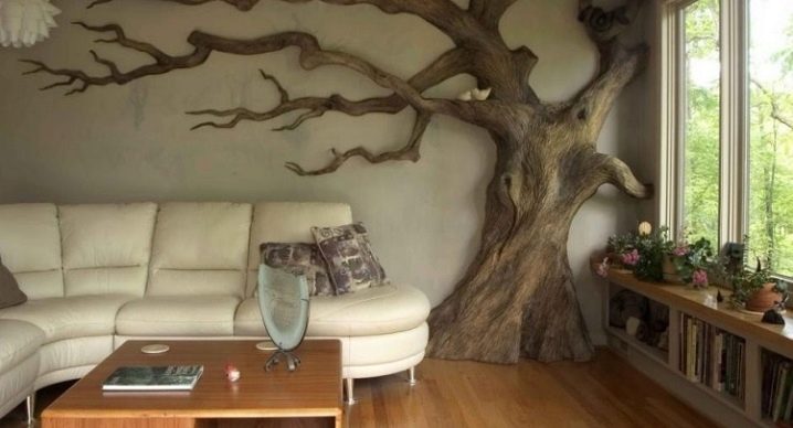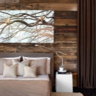 The tree in modern design can be combined with gypsum panels. Wood panels are the main component in creating the interior in many styles (for example, classic or modern).Wood is combined with wallpaper, covered with decorative plaster or covered with fabric.