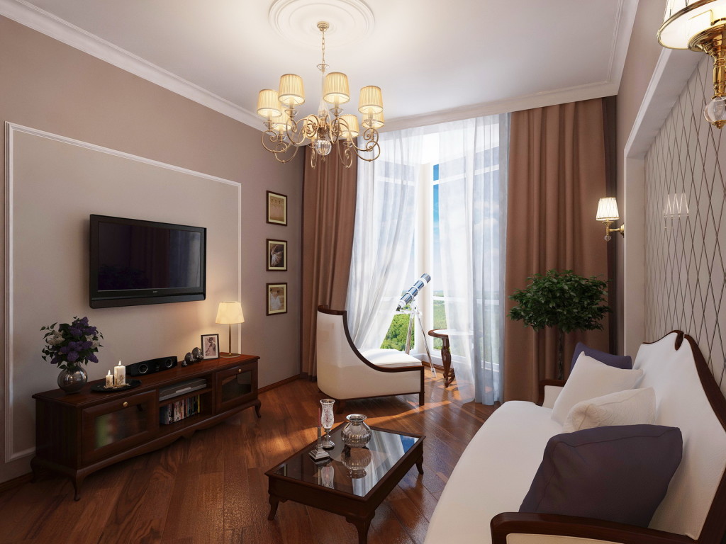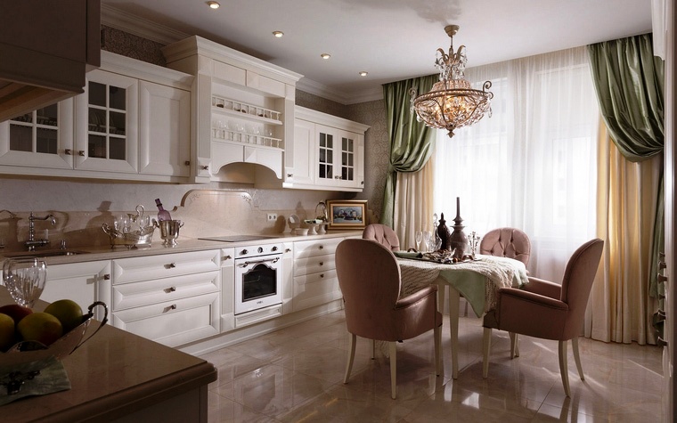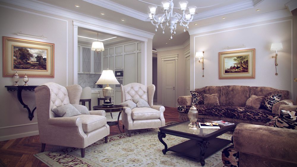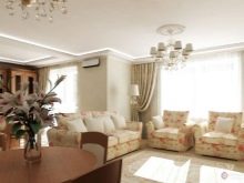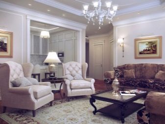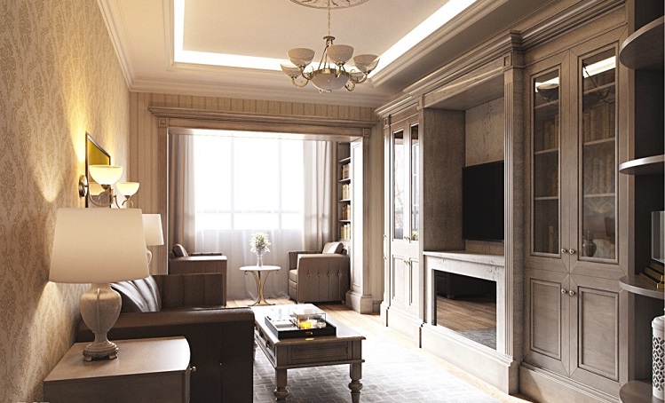- Classic. The interior, designed in a neutral color palette, should be strictly symmetrical, with a clear delineation of the area. Materials for construction and decoration should be natural. The ceilings are finished with gypsum stucco, but only if they are high enough. Do not forget about the conduct of both the ceiling light, and the device of wall lamps.
