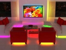 - LEDs have low electrical capacity, which allows to reduce electrical costs. They have a large color spectrum, which is why they are widely used by designers in interior design. During operation, such devices do not heat up, therefore, significantly increases the fire safety of the room.