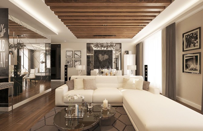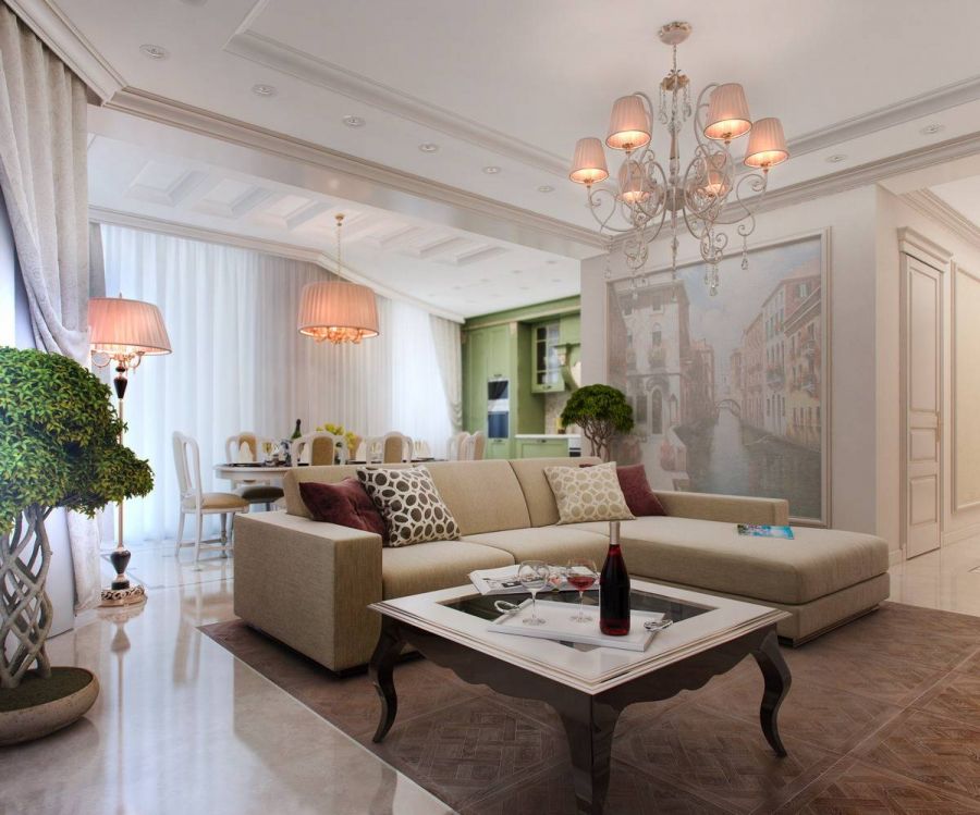 Apartments ranging from 65 square meters. m provide masters more opportunities to implement ideas. Rooms can be made in different styles, but they should have common features. For example, it is allowed to combine classics with neoclassics.