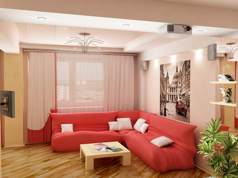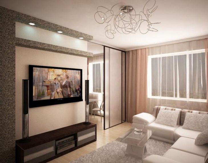 The room is better to withstand in a single color. In spaces with dimensions of 44, 52 and 54 square meters.m difficult to correctly balance the various design techniques.