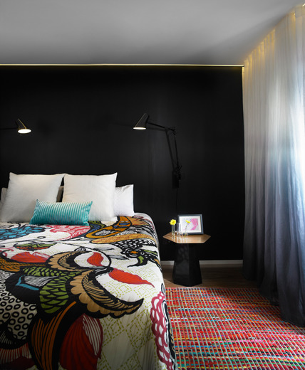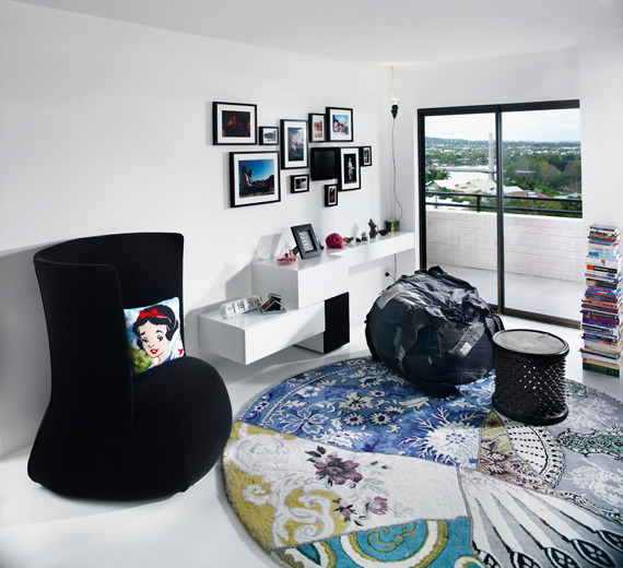 The work of Alexander Loterstein from the studio Derlot. The interior of the room is in harmony with the urban landscape. Through the huge panoramic windows, residents can observe the beautiful landscapes of the city of Brisbane. Such openings fill the room with light both during the day and at night. The dark wall visually lengthens the room and is a color accent.