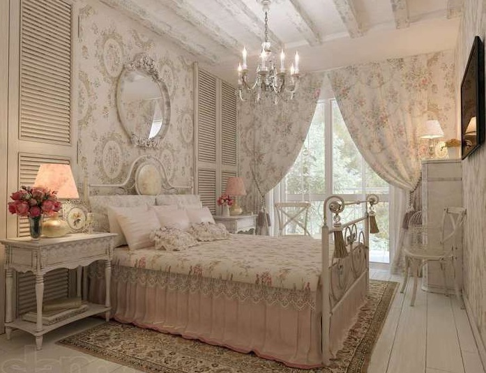 - Provence. This style is also called "French country". The rooms are trying to create an atmosphere of coolness, so they are decorated with forged elegant details, and they may not decorate at all. Walls of muted tones “liven up” with colors and paintings. Preference is given to textiles with floral motifs, which is rarely found in other ethnic styles.