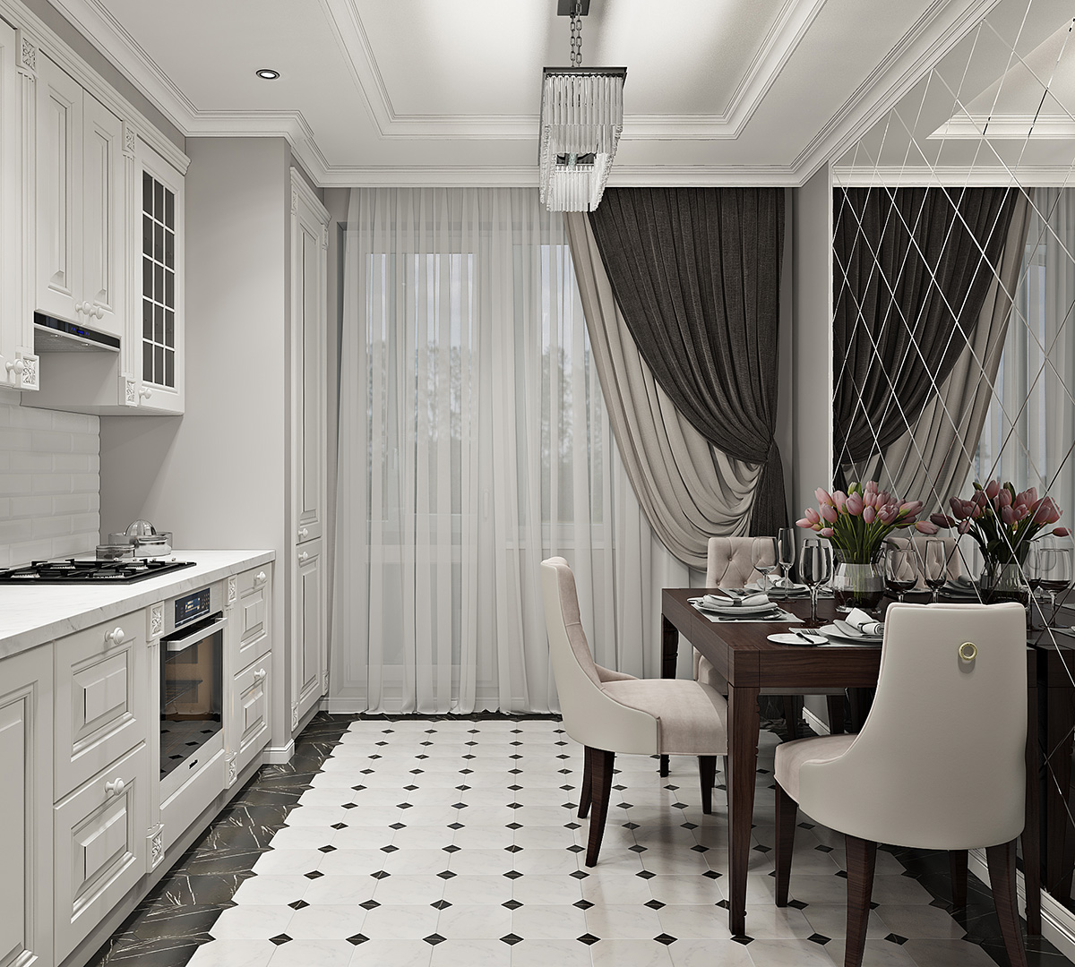 Apartments of Stalin type have high ceilings and an area of 60-70 square meters. The dismantling should include the installation of a doorway from the kitchen. "Stalin" allow any version of redevelopment, as the walls in them are not bearing. Often, non-standard room space, which complicates the choice of future design.