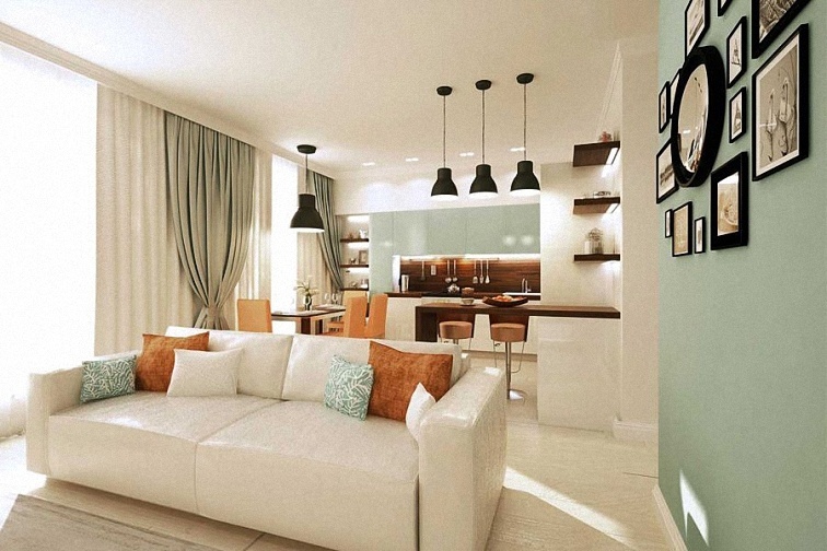The space of a small apartment must be zoned according to the needs of all family members. It is desirable to isolate the personal space of each. In a small apartment with an area from 40 to 47-48 square meters, a personal zone can be distinguished with the help of furniture. In a small apartment it is not recommended to mix several styles., the gradation of color solutions is also out of place.