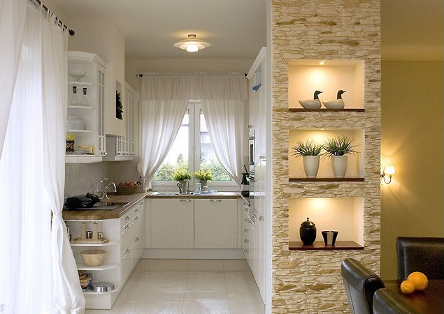 - The location of the window and door openings, partitions, the shape of the home. Insufficient illumination of the premises makes it necessary to resort to dismantling the walls, re-equipment of the doors to the arches or to increase the space by combining the room with a balcony.