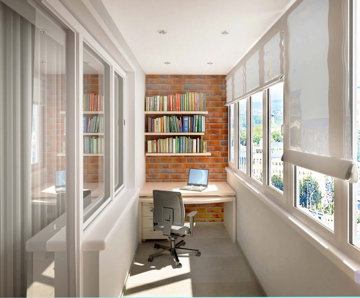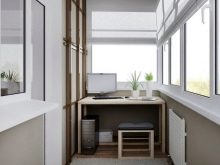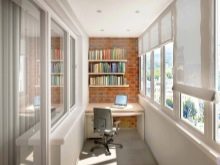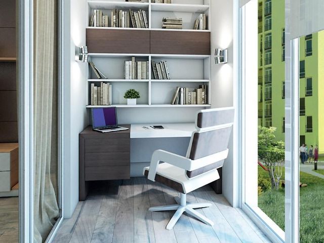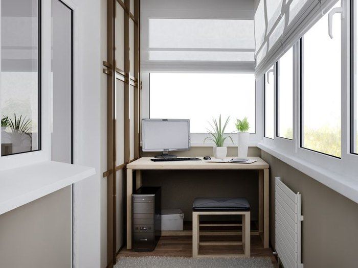 The plastic balcony is a territory that is reliably protected from wind, moisture, cold. It is comfortable to work here: all the necessary furniture will fit. Balcony door will restrict household access. True, in the summer one of the relatives will want to stand on the balcony, dream, distracting from work at the same time. This is especially true for a one-room apartment.