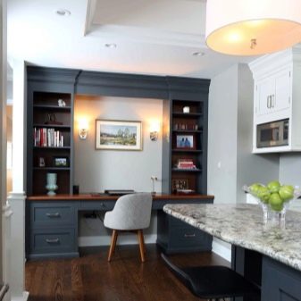 Sometimes you need a cabinet with doors. In another situation, it will be easier to get things from the open shelf; in this case, the doors may be superfluous.The workplace created at home is a large area of personal space, which is convenient. You can dream, dream, invent and translate ideas into reality.